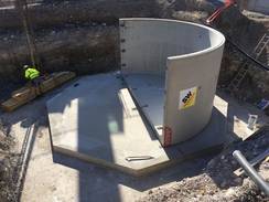 Dank der Fertigteilbauweise konnte der gesamte Behälter an nur einem Tag versetzt werden. Der Großbehälter besteht aus hochwertigen Betonfertigteilen, hergestellt aus selbstverdichteten Beton.