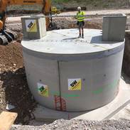 Löschwasserbehälter sind unterirdische, überdeckte Speicher die eine vom Trinkwassernetz unabhängige Versorgung garantieren. Sie stellen eine wichtige Vorbeugende Maßnahme für den Brandschutz dar. Unterirdische Behälter kommen immer dann zum Zug, wenn das notwendige Volumen - wie in dem Fall der Raststation - möglichst platzsparend ausgeführt werden soll.