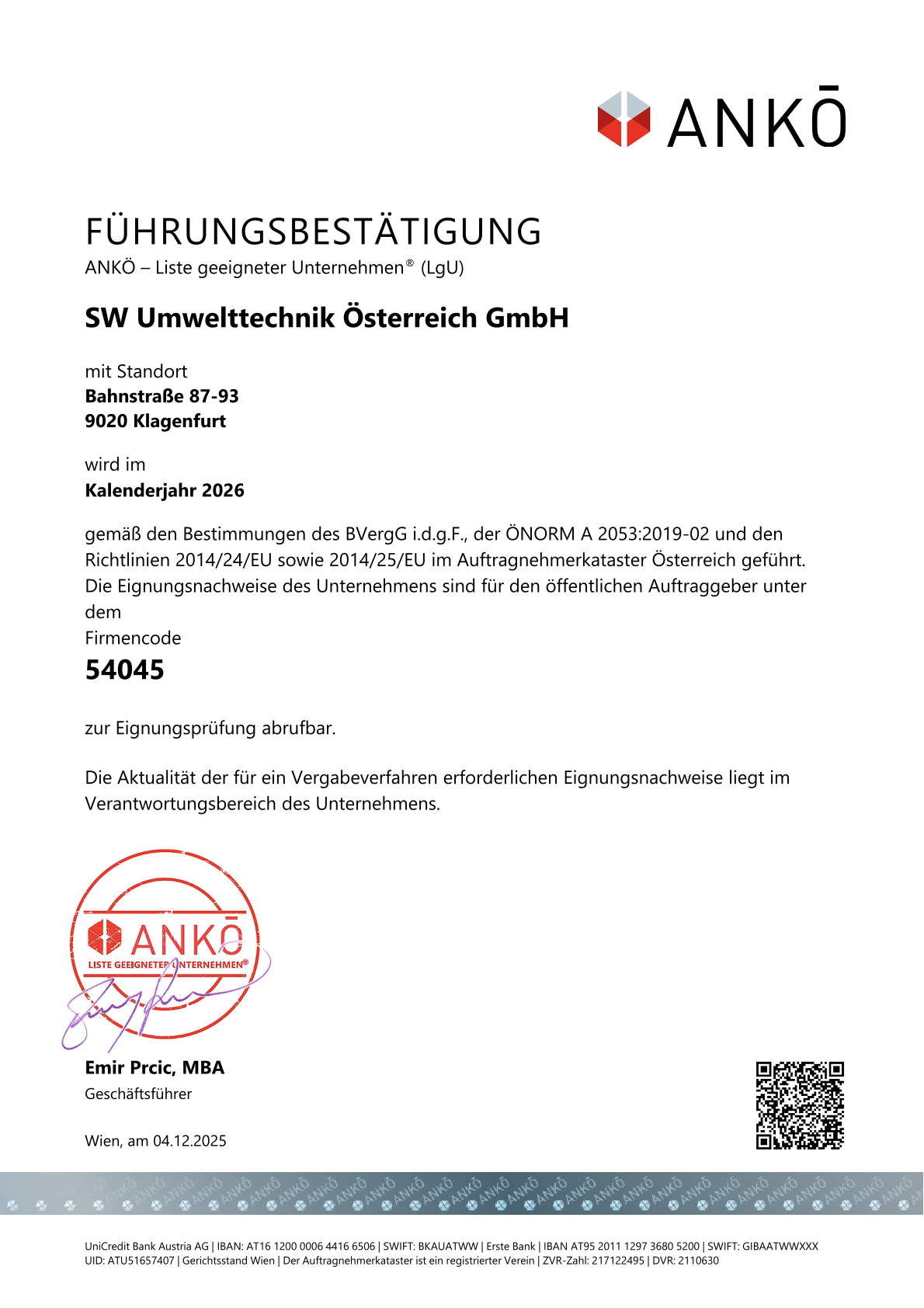 ANKÖ Führungsbestätigung 2026