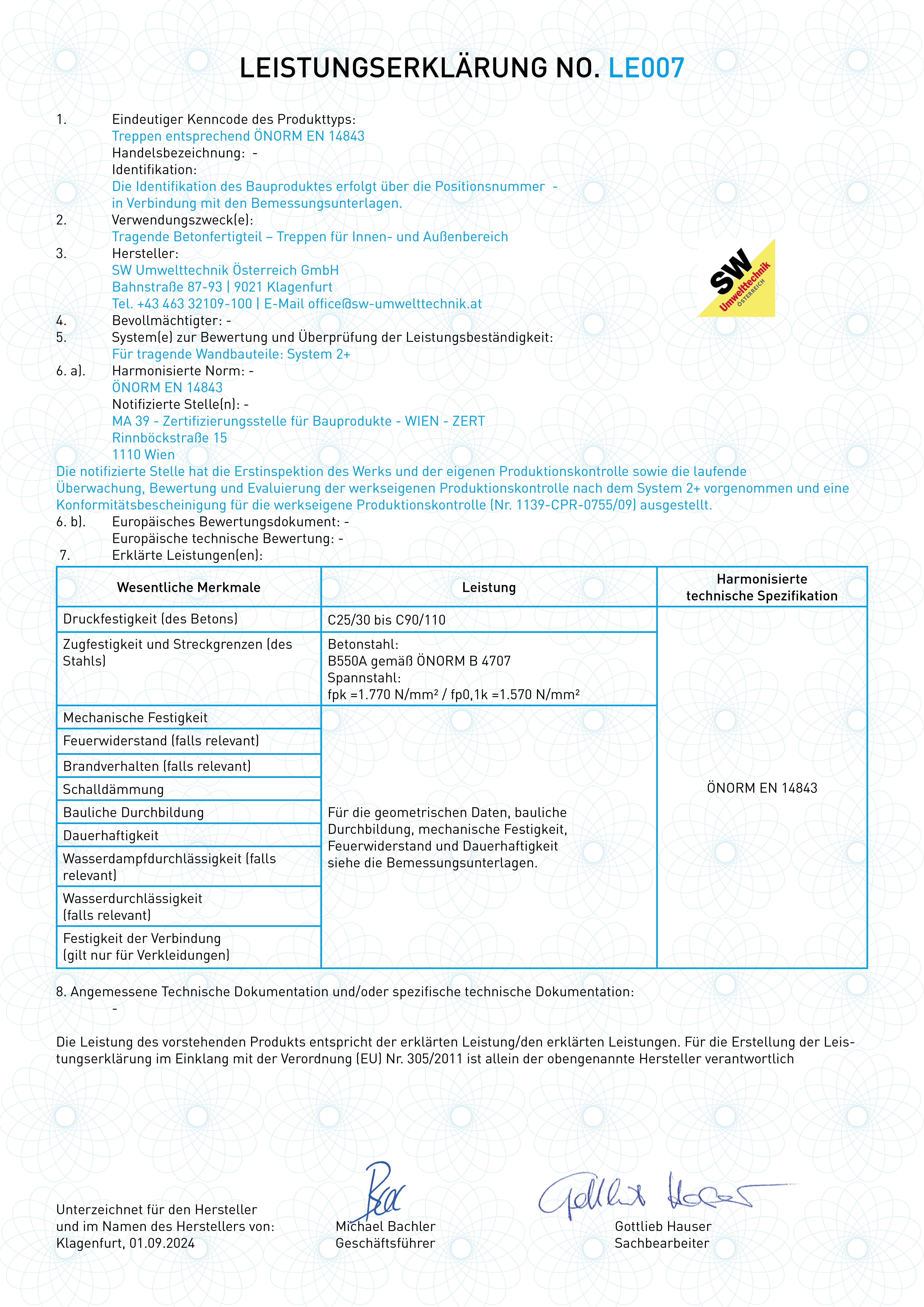 Die SW Umwelttechnik Österreich GmbH wurde auf Grund seiner Produkte, Dienstleistungen und Firmenphilosophie vom Energieforum Kärnten mit dem EFK Zertifikat für Nachhaltigkeit ausgezeichnet.