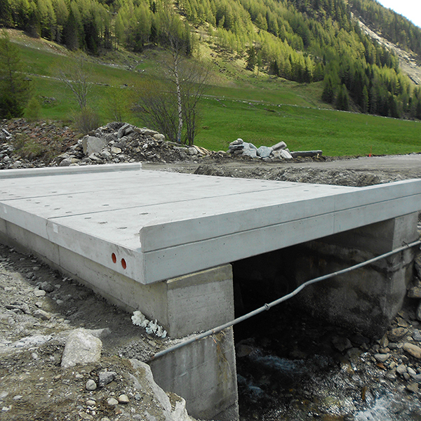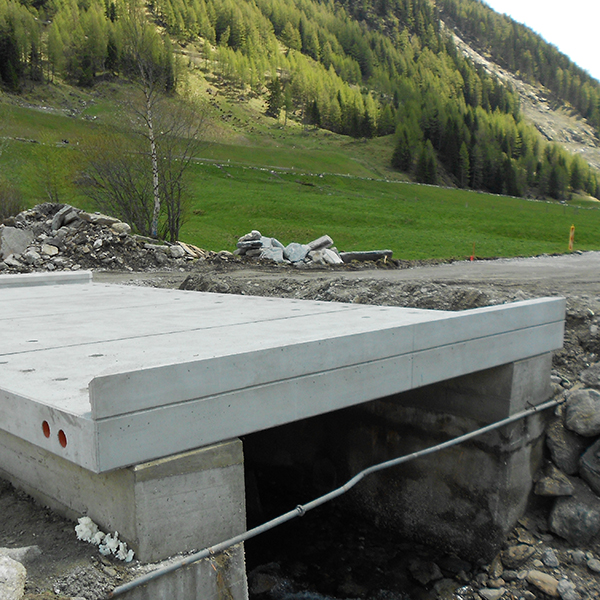 Die Daberbachbrücke am Fuße des Felbertauern befindet sich in der Gemeinde Matrei in Osttirol. Die Brücke mit Tragwerksabmessungen von 9,0 m x 3,5 m, bestehend aus 4 Brückenplatten inklusive Randbalken, wurde neu errichtet.