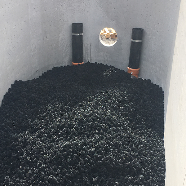 Die Gewässerschutzanlage 2 (für 850 l/s) besteht aus insgesamt 5 Stück SMA 200 Mineralölabscheidern, 5 Rundbehältern als Verteilerschächte sowie 15 nachgeschalteten Filterbecken ausgestattet mit dem technischen Filtermaterial SW-AQUAfilt-F3.