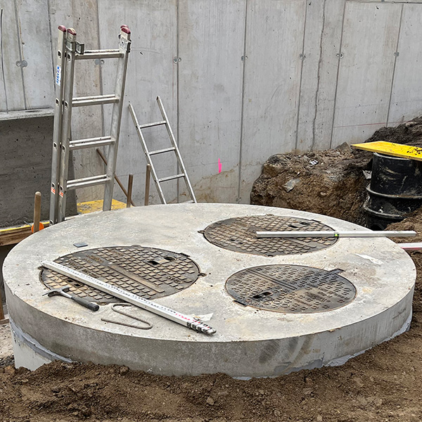 Für das Hochwasserschutzprojekt in Gmünd wurden verschiedene Rundbecken für Pumpwerke (Hebeanlagen) errichtet und geliefert. Die Flachabdeckungen wurden mit ebenbündig eingelegten Einstiegsdeckeln gefertigt.