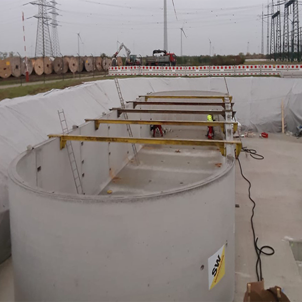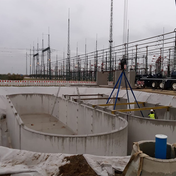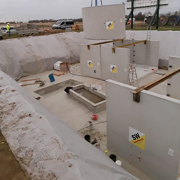 Für die Erweiterung des APG Umspannwerkes Zurndorf wurde für die Löschwasserversorgung ein Speicher von in Summe 600 m³ benötigt. Dafür wurden in Form von Fertigteilelementen zwei Behälter mit je 300 m³ Nutzinhalt errichtet.