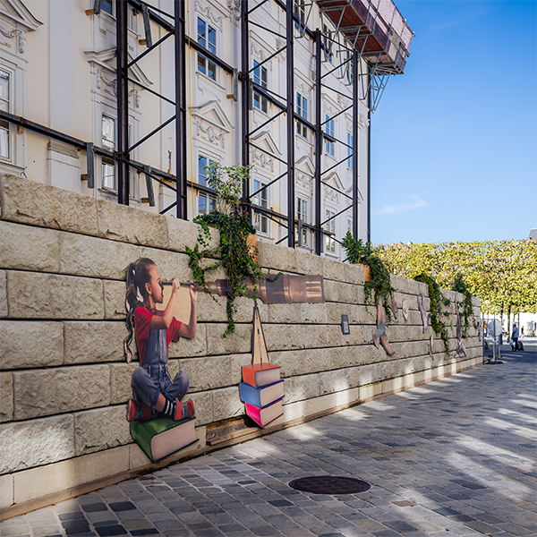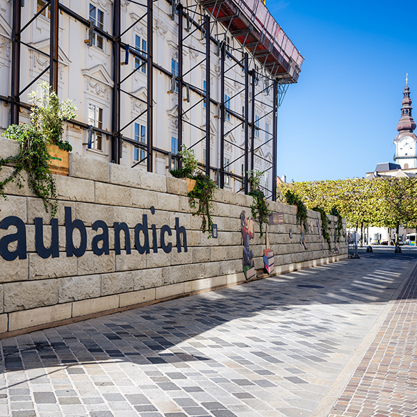 Das SW-Stützwandsystem erfüllt bei diesem Bauvorhaben zwei Funktionen. Einerseits dient das Gewicht der Mauer zur Stabilisierung des Baugerüstes, andererseits konnte durch die Optik der Steine ein Sichtschutz geschaffen werden, der sich hervorragend in das Stadtbild einfügt. Durch das modulare System konnte die Mauer in kürzester Zeit aufgestellt werden, wodurch sich die Behinderung des Stadtverkehrs minimieren ließ.