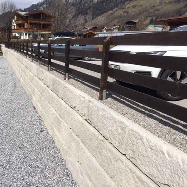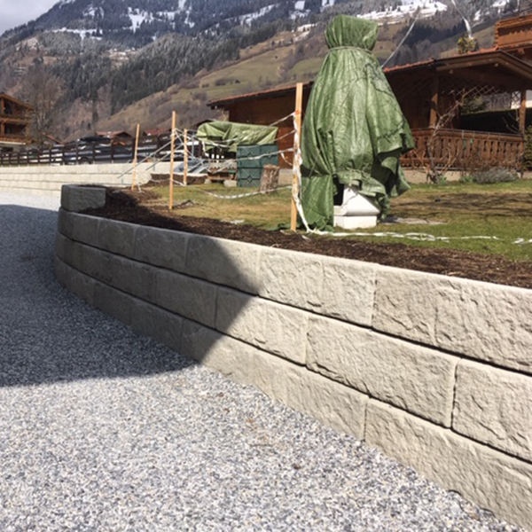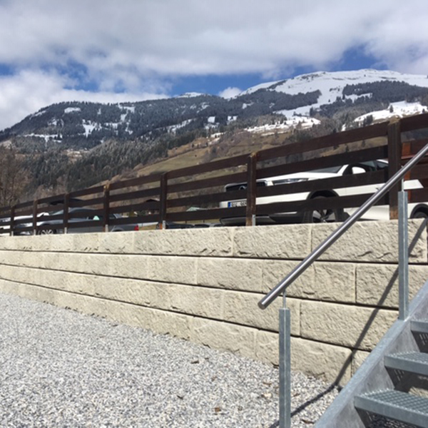 Für die Außengestaltung das Gasthofes Egger Wirt wurde das SW-Stützwandsystem eingesetzt. Der Parkplatz wurde abgesichert und die Hofeinfahrt neu gestaltet.