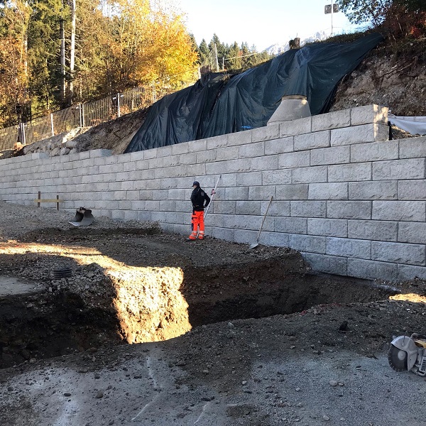 Im Zuge der Hotelerweiterung des Hotels Wilder Kaiser in Scheffau wurden bei der Parkplatz- und Parkdeckerrichtung, sowie bei der Außenanlagengestaltung auf das SW-Stützwandsystem gesetzt.