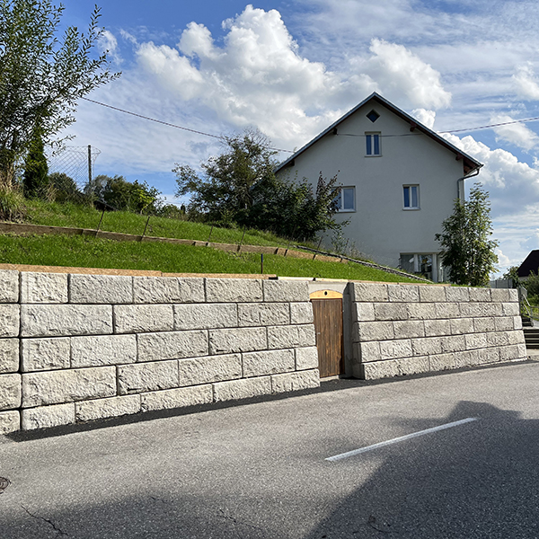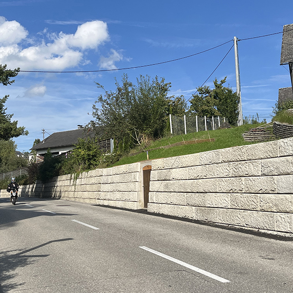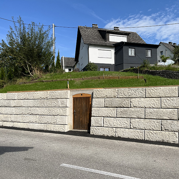 In der Gemeinde Weibern in Oberösterreich wurde mit dem SW-Stützwandsystem ein neuer und optisch ansprechender Akzent bei einem bestehenden Mostkeller entlang der Straße gesetzt.