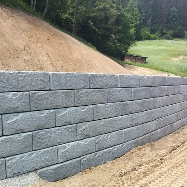 Durch das SW-Stützwandsystem konnte die nutzbare Freifläche hinter dem Wohnhaus erweitert werden, bei gleichzeitiger Schaffung einer Parkfläche oberhalb der Mauer.
