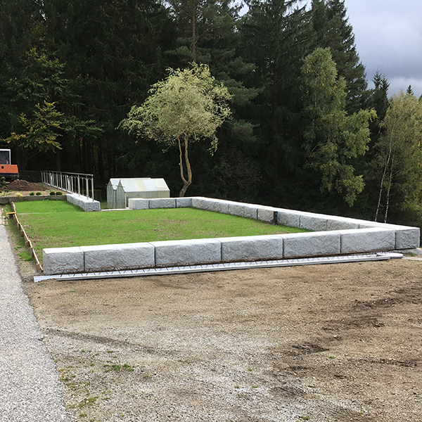 Durch die Errichtung einer SW-Stützwand mit integriertem Stufenaufgang konnte der Gartenbereich begradigt und der größtmögliche Platzgewinn geschaffen werden.