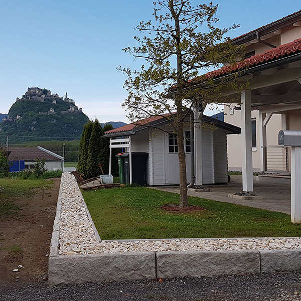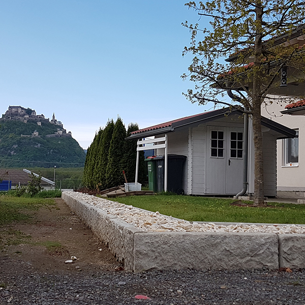 Unser 41 cm hoher Abschlussstein kann auch als einreihige Grundstückseinfriedung eingesetzt werden. Nicht immer geht es bei uns um Hangbefestigung. Mit dem SW-Stützwandsystem kann man auch bei niedrigen Höhen gestalterisch tätig werden.