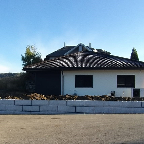 Das SW-Stützwandsystem wurde hier als Gartenmauer und als Abgrenzung zur Straße errichtet. Zusätzlich wurden die Oberfläche in Steineoptik mittels einer Nanoversiegelung beschichtet.