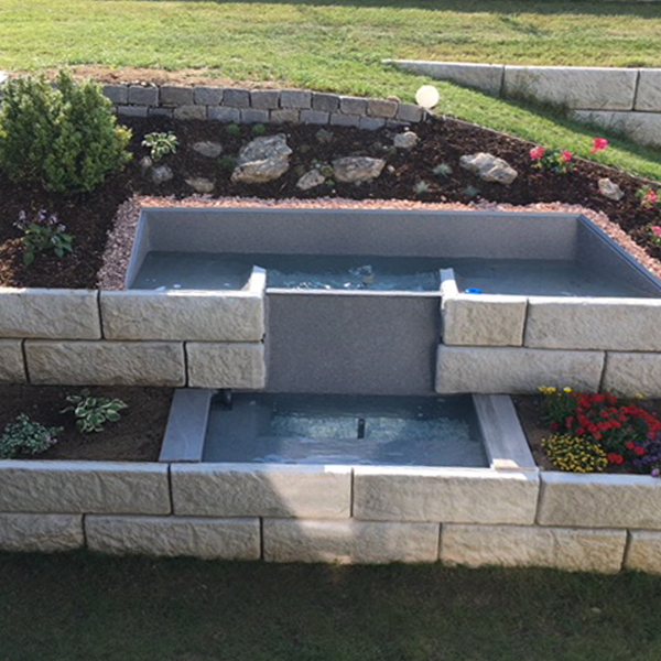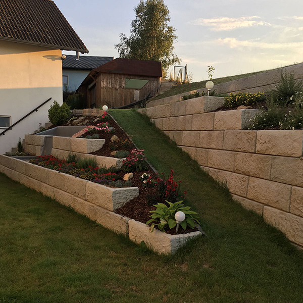 Das anspruchsvolle Stützwandprojekt wurde gemeinsam mit unserem Partner Marius Kiesenhofer umgesetzt. Neben einer Stützwand wurde ein Brunnen in die Wand integriert.