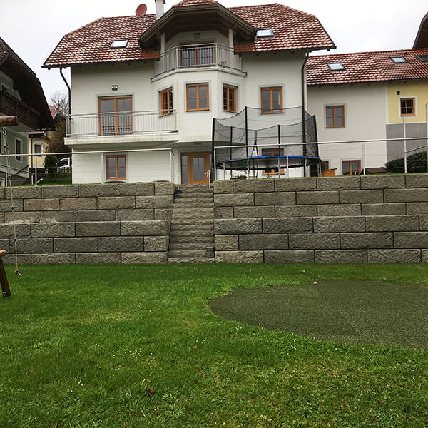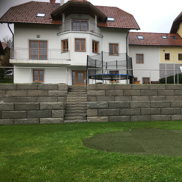 Das Projekt in Waidhofen an der Ybbs sieht die Errichtung eines SW-Stützwandsystems bei einem Privathaus vor. Die SW-Stützwand wurde für den Gartenbereich mit Stufenaufgang und zwei Etagen (Terrassierung) gebaut.